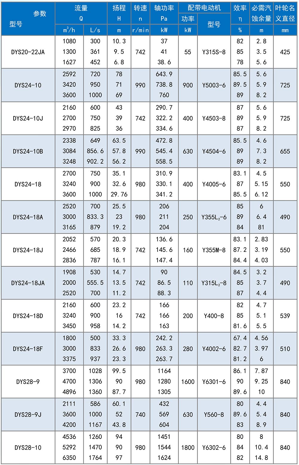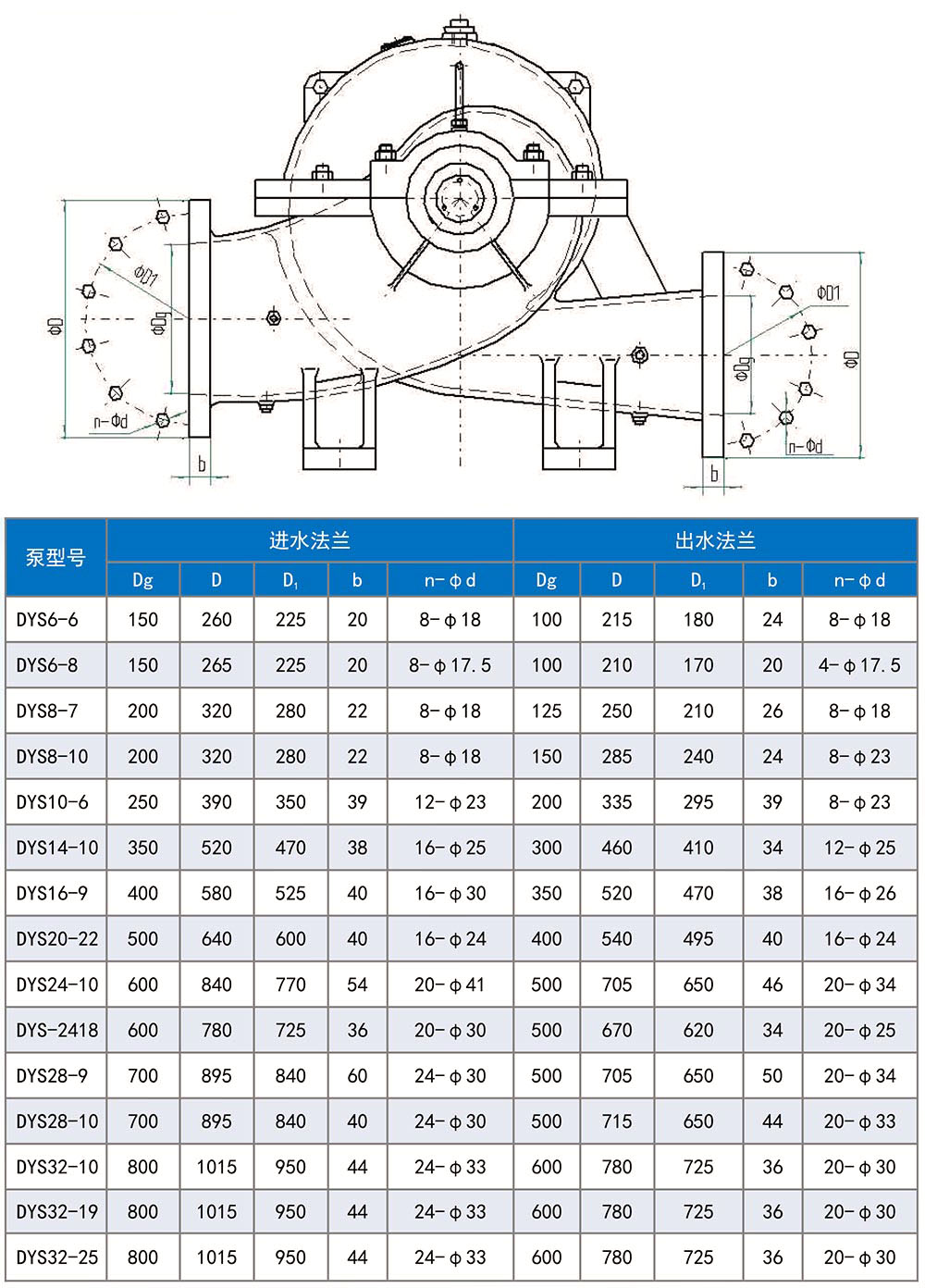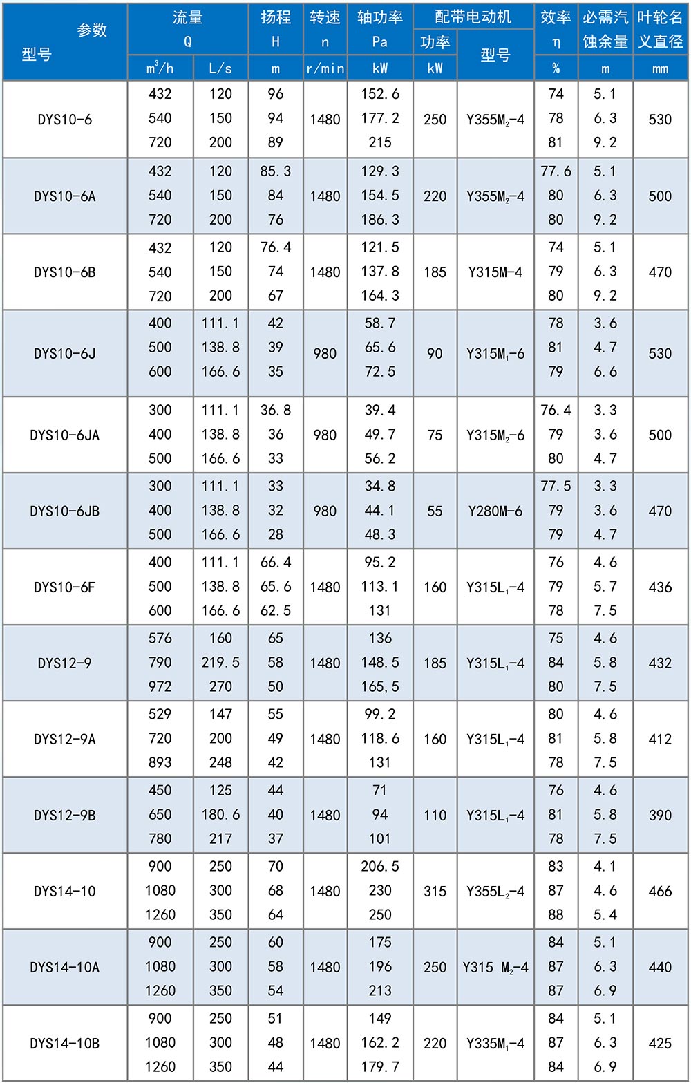 DYS 型單級(jí)雙吸水平中開泵標(biāo)準(zhǔn)性能參數(shù)表