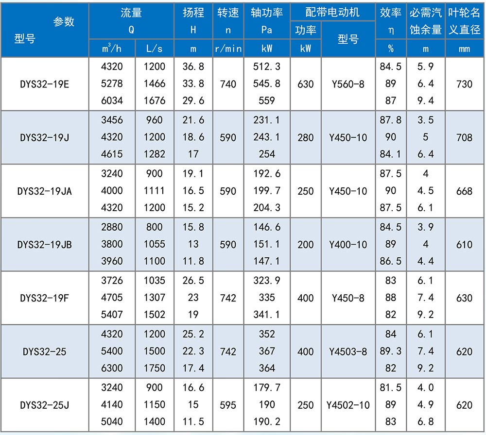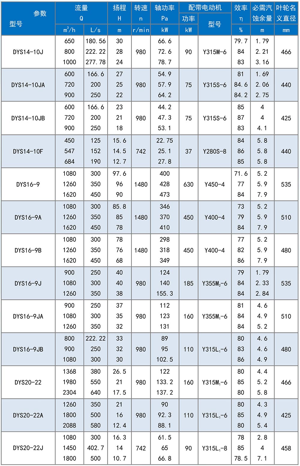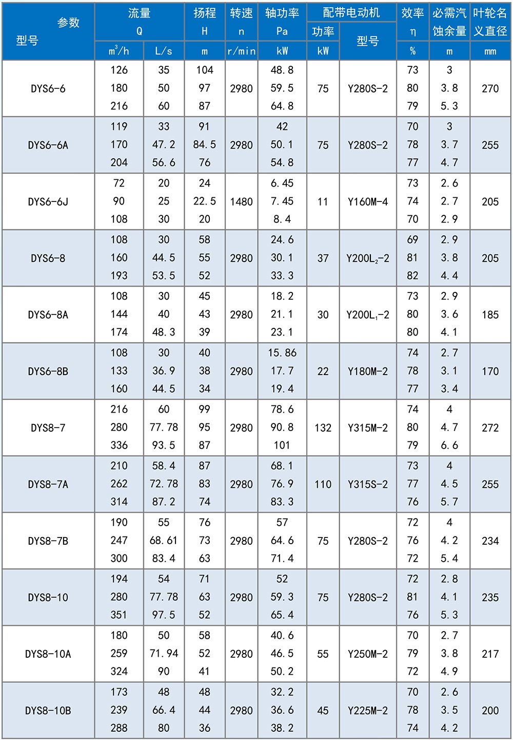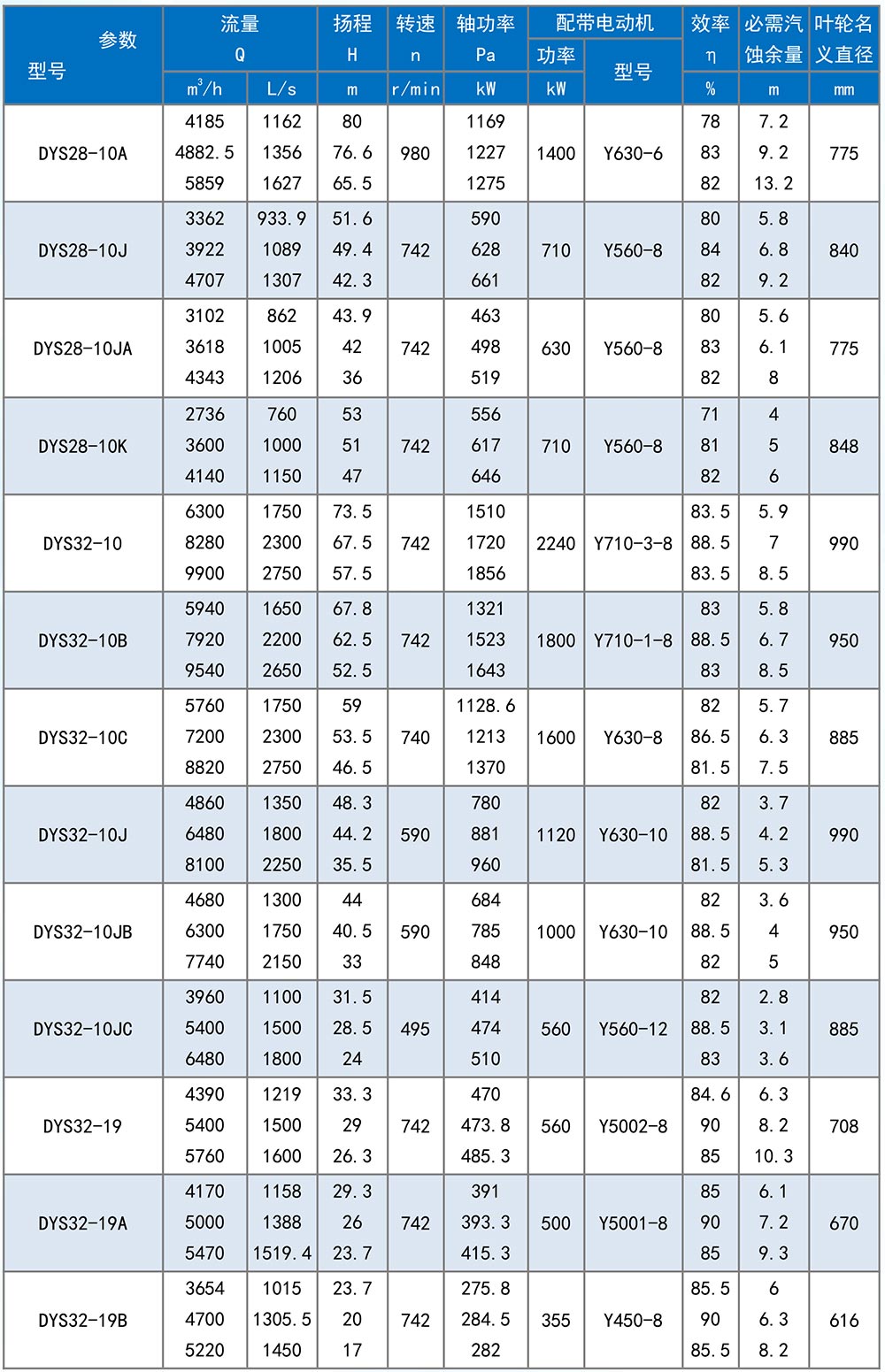 DYS 型單級(jí)雙吸水平中開泵標(biāo)準(zhǔn)性能參數(shù)表
