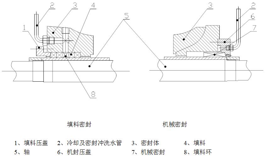 填料密封與機(jī)械密封結(jié)構(gòu)圖